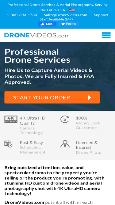 100%We are a Nationwide Drone Media Company that Films Affordable High Quality Custom Drone Videos and Aerial Photography for Real Estate, Construction, Farms & More. DroneVideos also has Drone Stock Footage, a daily blog covering Drone & Aerial Photography, Viral Videos & More