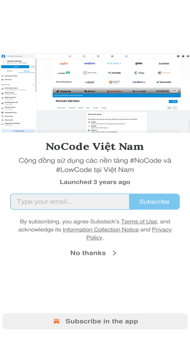 85%Cộng đồng sử dụng các nền tảng #NoCode và #LowCode tại Việt Nam. Click to read NoCode Việt Nam, a Substack publication with hundreds of subscribers.