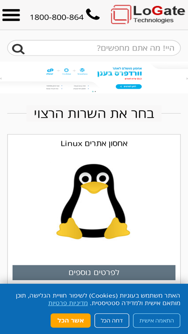 100%לוגייט טכנולוגיות - אחסון אתרים בישראל על גבי שרתי לינוקס או ווינדוס, חנות וירטואלית, אתר וורדפרס, ג'ומלה, קוד פתוח ודוט נט, חנות וירטואלית מקצועית, בניית אתרים, קידום אתרים, שיווק דיגיטאלי, מכירת דומיין, לפרטים נוספים והצעת מחיר משתלמת צרו קשר עכשיו 1-800-800-864
