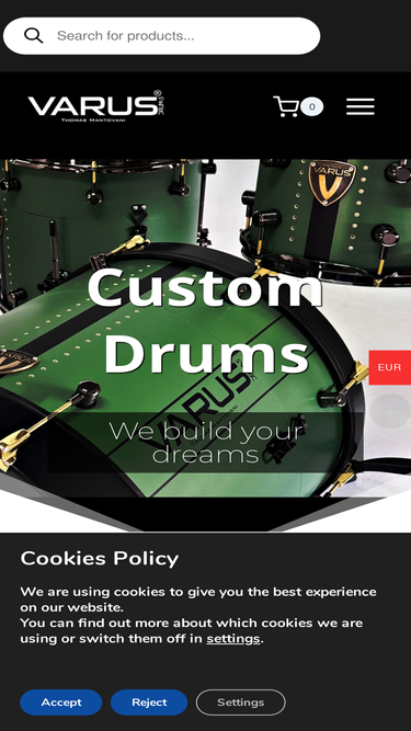 79%Configuration: Bass Drum: 22″ × 18″ – 8-ply (7.2 mm shell thickness) Tom: 12″ × 9″ – 6-ply (5.4 mm shell thickness) Floor Tom: 16″ × 16″ – 6-ply (5.4 mm shell thickness) Shell Material: 100% MapleHardware: Black NickelHoops: Die-CastFinish: Green Lava – High Gloss (Cymbals, stands, and snare not included) Description The Varus Green Lava kit blends modern power with classic maple musicality.Each shell is handcrafted from premium maple to deliver a warm, deep low-end, articulate mids, and a smooth top—perfect for rock, fusion, and studio work.The striking Green Lava high-gloss finish and black nickel hardware create a bold, elegant look on stage and in the studio, while die-cast hoops add focus and controlled sustain for precise tuning and short, punchy resonance. ✨ Free worldwide shipping! Availability Built to order / Pre-order: Production time 8–12 weeks.You’ll be notified as soon as your kit is ready for shipping. Custom Options Want different sizes, configuration, color or hardware? Availables colors: Red, Green, Gray, Blue, GoldWe’ll craft your Green Lava kit exactly to your specs.👉 Contact us at info@varusdrums.com or via WhatsApp: Chat with us.