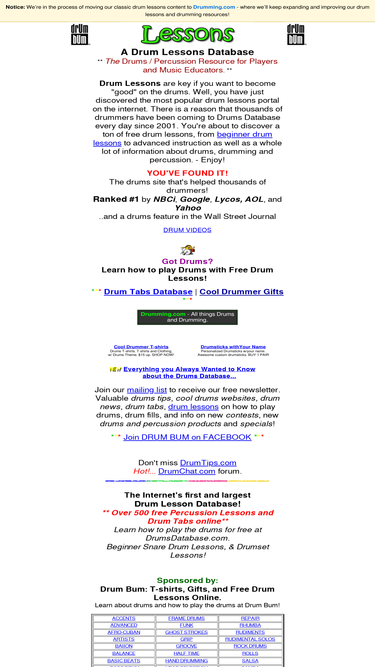 94%free drum lessons and lesson resources. over 500 links to free drum lessons and drum tabs online. learn how to play the drums using our database.