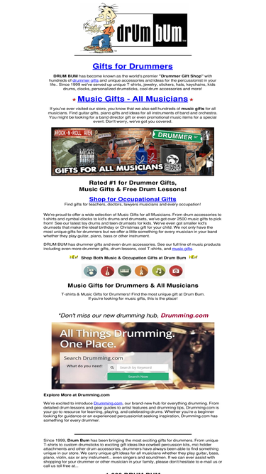 98%buy gifts for drummers & music gifts for all musicians. drum bum is the world's #1 drummer store with over 2500 music products, free drum lessons and drum tabs.