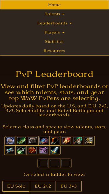 Your favourite World of Warcraft arena & shuffle activity, leaderboards, analytics, player profiles, game history & more.