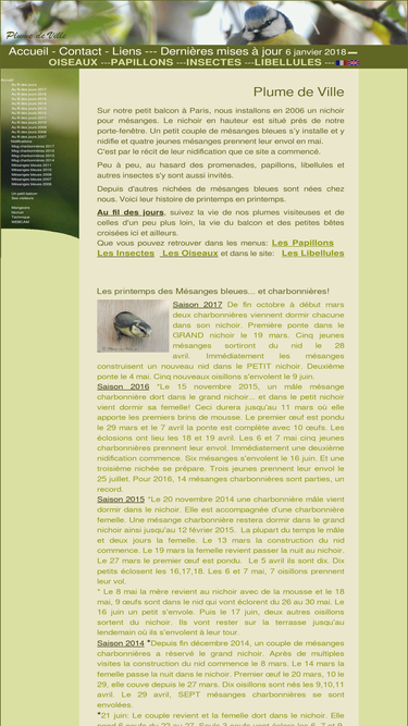 62%la vie des mésanges bleues d’un balcon de paris. blue tits life in a balcony in paris. photos prises de l’intérieur d’un nichoir par des web caméras en visible et infrarouge et photos d’oiseaux en extérieur. journal des évènements de la saison. suivi de la nidification, de la construction du nid jusqu’à l’envol des oisillons. séquences vidéos. observations personnelles. pictures taken inside a nesting box with web cameras in visible and infra-red and pictures of birds outdoors. diary of the events of the season. nesting watch from building of the nest until the take-off of the hatchlings. video sequences. personal observations.