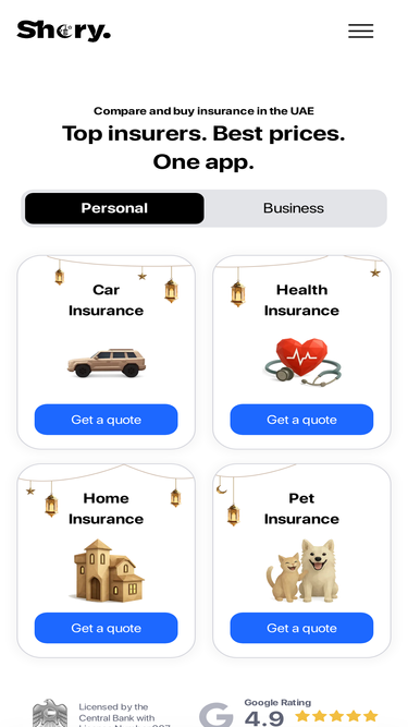 74%Find the best insurance options with Shory. Compare and buy car, home, travel, and pet insurance online in the UAE. Enjoy exclusive rates and reliable service, available 24/7.