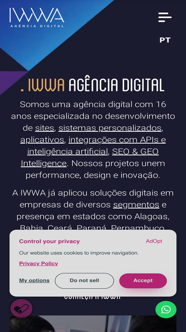 86%A Iwwa é uma agência digital especializada em programação. Atendemos clientes em Angola, Bahia, Cabo Verde, Ceará, Paraná, Pernambuco, Portugal, Rio de Janeiro e São Paulo.
