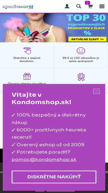100%Kondomshop je diskrétny sexshop s 10-ročnou tradíciou a tisíckami spokojných zákazníkov.Všetky kondómy,gély a erotické hračky skladom. Doručenie do 24h