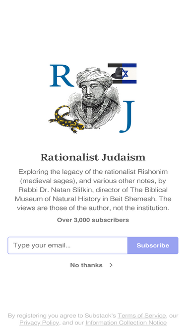 78%Exploring the legacy of the rationalist rabbinic tradition, and various other notes on Judaism, science and society, by Rabbi Dr. Natan Slifkin. The views are those of the author alone. Click to read Rationalist Judaism, by Natan Slifkin, a Substack publication with thousands of subscribers.