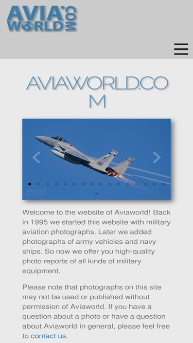 100%aviaworld.com previous next welcome to the website of aviaworld! back in 1995 we started this website with military aviation photographs. later we added photographs of army vehicles and navy ships. so now we offer you high-quality photo reports of all kinds of military equipment. please note that photographs on this site may not be used […]
