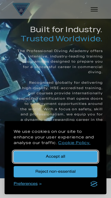 We are one of the most modern diver training schools in the world with a unique link to the diving industry through our ADC accredited sister company Shearwater Marine Services, one of the UK’s largest marine civil engineering diving contractors. This vital interface with the commercial diving world allows our delegates to experience an unrivalled industry relevant training programme that teaches essential skills in a real world environment.