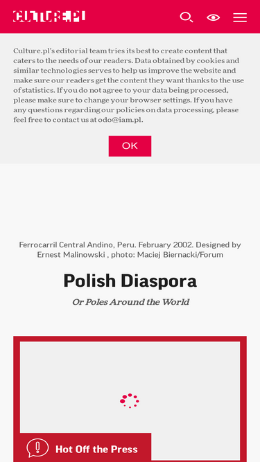 96%featuring over 50,000 articles in polish, english and russian, culture.pl features the best of polish literature, design, visual arts, music, film and more, with over 10 million visitors a year across 80 countries.