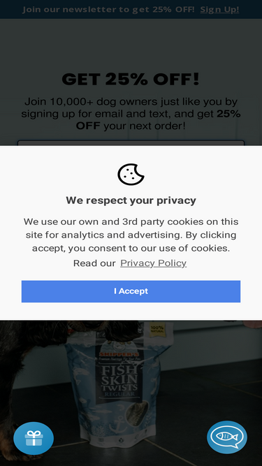 65%Our low fat dog treats contain 2.56% fat and made from 100% whitefish. These treats are guilt-free, nutrient-packed and great for weight management.