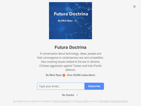 67%A conversation about technology, ideas, people and their convergence in contemporary war and competition. Also covering issues related to the war in Ukraine, Chinese aggression against Taiwan and Indo-Pacific defence. Click to read Futura Doctrina, by Mick Ryan, a Substack publication with tens of thousands of subscribers.