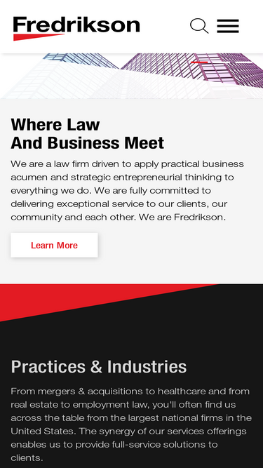 85%Fredrikson & Byron’s growing Iowa office serves businesses throughout Iowa and beyond. Clients appreciate our broad range of services.