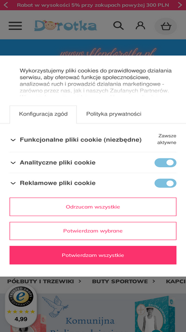 94%Sklep z obuwiem i odzieżą dziecięcą