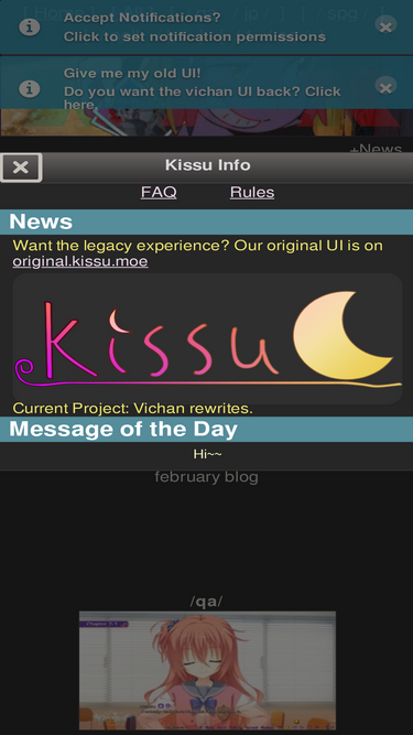 90%Kissu.moe is a forum devoted to the otaku community, both ecchi and sophisticated. Partake in discussion on anime, Japan and current events or share images and videos with others. Escape from the monotony of the real world and embrace Kissu~