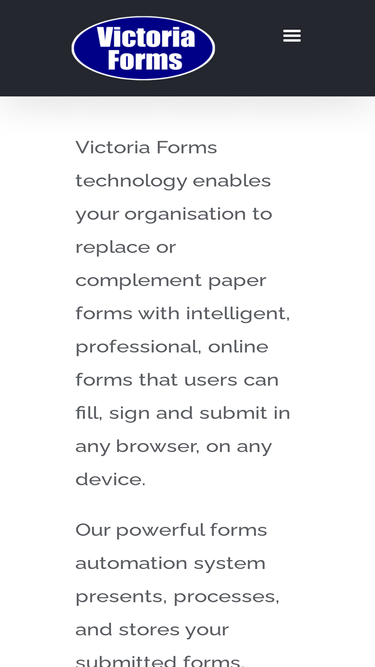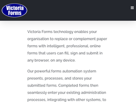 58%Online Forms in Education Victoria Forms provides Education establishments with the means to turn all of your existing forms, used both internally and externally, into online processes, for online filling, signing, payment and submission. Examples include: application forms registration forms parental consent forms absence requests trip signup forms medical forms purchase requests facilities booking requests job applications statutory reporting forms With numerous powerful features and Add-On