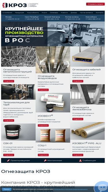 91%Материалы для огнезащиты вентиляции, металлоконструкций, железобетона и силовых кабельных линий. Теплоизоляция трубопроводов и воздуховодов