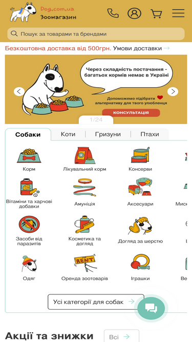 78%інтернет магазин зоотоварів дог, пропонує якісний корм для собак, котів, гризунів та птахів. великий вибір товарів для тварин від виробників, швидка доставка по україні в dog.com.ua