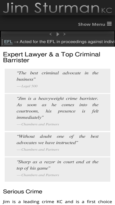 100%widely regarded as a top criminal barrister, jim sturman qc ranks as a leading qc and criminal trial counsel.