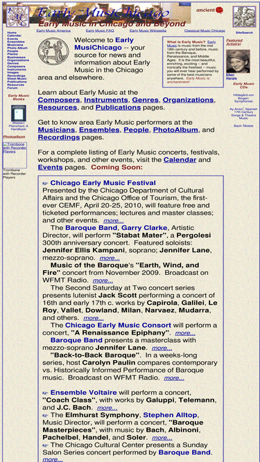 96%early music news and info from chicago and elsewhere - events, concerts, performers, instruments, composers, recordings, photos, and much more.