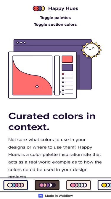 67%See color palette inspiration on a real example website. As you click on different palettes every color on this site updates to give you context of how that color could be used for your design or illustration projects.