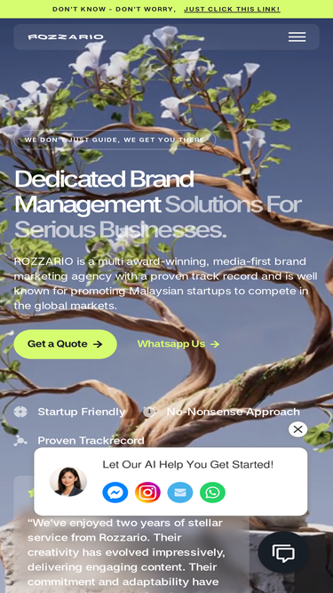 93%Build a brand that grows with you. Rozzario’s all-in-one brand management service covers strategy, design, website, social media, SEO, PR & more — with fixed monthly hours, scalable deliverables, and a full team behind your business goals.