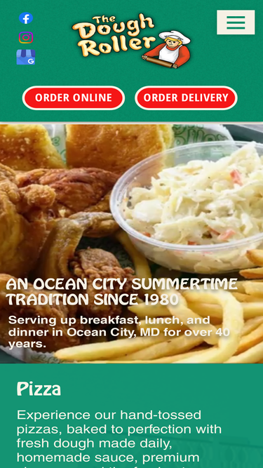 90%the dough roller is a part of the ocean city restaurant tradition for more than 39 years. we serve breakfast, pancakes, and fresh dough pizza in ocean city, md. place your order today!