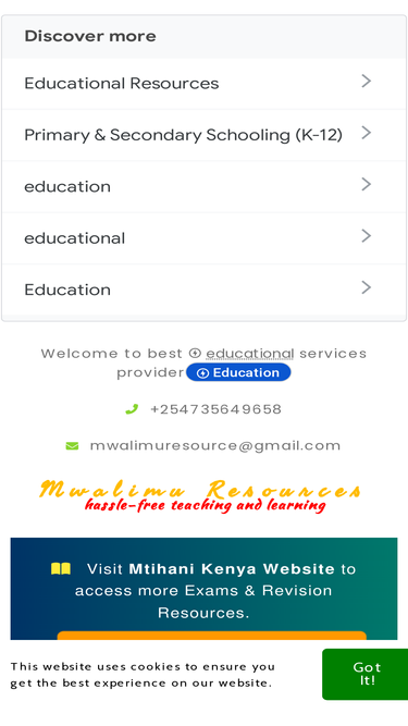 90%Get Form 1 Notes and Revision Questions in all subjects including Mathematics, Chemistry, Biology, Physics, Geography, History, English, Kiswahili and More.