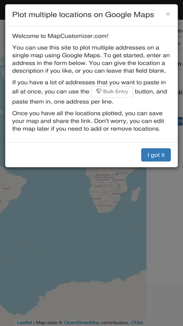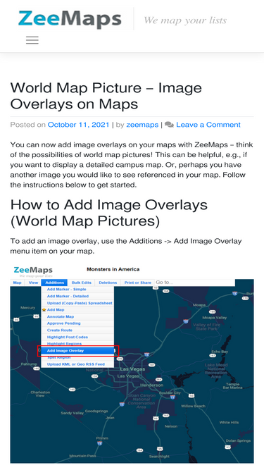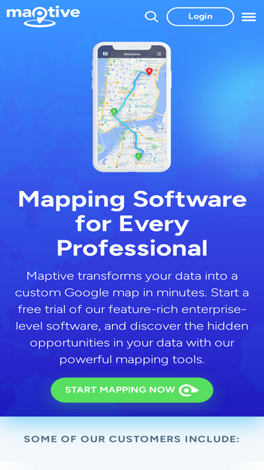 76%create a map from location list, crowd source, spreadsheets, etc. publish, share interactive maps. mapping of radius, administrative, and other regions. map images.