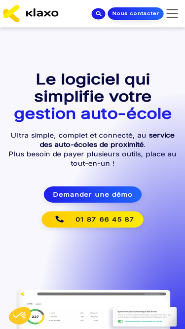 92%Révolutionnez votre auto-école avec la digitalisation Klaxo. Suivi en ligne, gestion simplifiée, et expérience moderne pour une formation de conduite optimale.