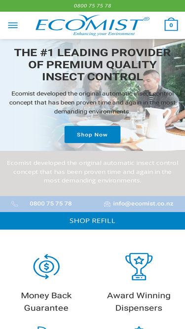 80%The Ecomist Starter pack has everything you need to stop insects in their tracks. Our standard E4 Automatic Dispenser is programmable and comes with one can of 250ml Insect Spray with Natural Pyrethrins, Alkaline batteries and a stand and screws for easy installation. The dispenser comes with a one-year warranty - fill out your warranty here. The dispensers can also be used with our 250ml Odour Neutralisers with French Perfume. We have up to 50 French sourced fragrances to choose from