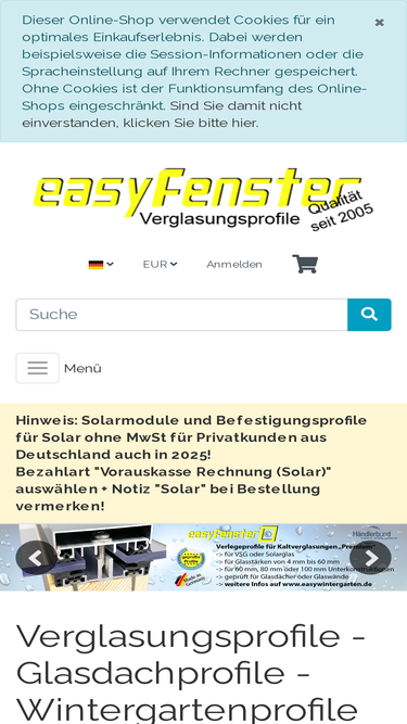 97%Glas - Solarglas befestigen mit Verlegeprofilen. Terrassenüberdachung bauen mit Glas oder teiltransparenten Solarmodulen. EasyFenster - Spezialist für Glasbefestigungen