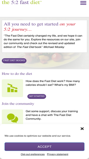 79%How the diet works and how much you should eat. Calculate your BMI, BMR and TDEE (the amount of calories you burn per day) on The Fast Diet official site.