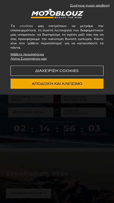 45%βρείτε όλο τον εξοπλισμό μοτοσικλέτας, ποδηλάτη και cross . περισσότερες από 350 μάρκες μοτοσυκλετών για να ανακαλύψετε. δωρεάν παράδοση και επιστροφές. πληρωμή σε 3 δόσεις χωρίς χρέωση