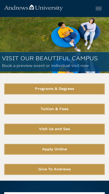 86%Nationally ranked diverse and global university offering associate to doctoral degrees. Flagship school of Adventist church in Berrien Springs, Michigan.