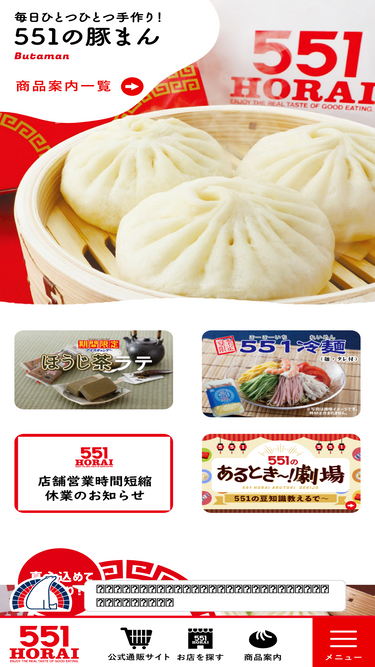 76%551HORAI蓬莱の歴代のCMをご紹介するシアターです!おかげさまで今やお馴染みになったなるみさんご出演の「あるとき〜」のCM。19〇〇年から、お馴染みのCMはスタートしました。大阪名物の豚まん[肉まん]は551HORAI蓬莱。