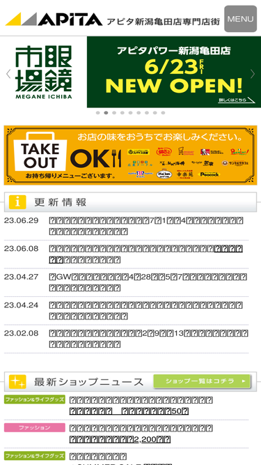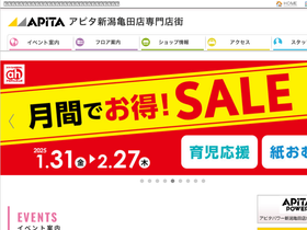 92%たのしさ広がる、アピタ新潟亀田店専門店街のホームページへようこそ。ショップニュースやお得なセール情報、スタッフ募集など情報満載!