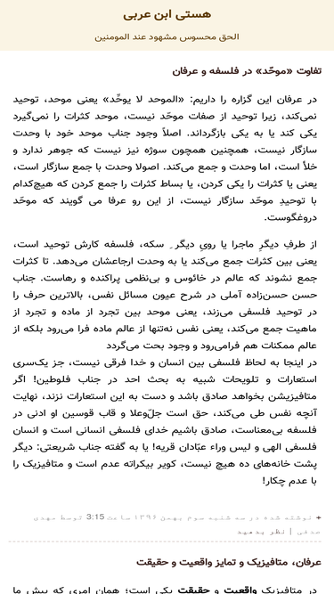 هستی ابن عربی الحق محسوس مشهود عند المومنین