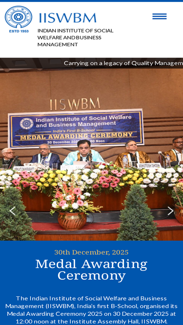 72%indian institute of social welfare and business management (iiswbm) is one of the leading business schools in india for mba. iiswbm also offers a range of research programs, degree programs, pg diplomas and short programs in different fields of management.