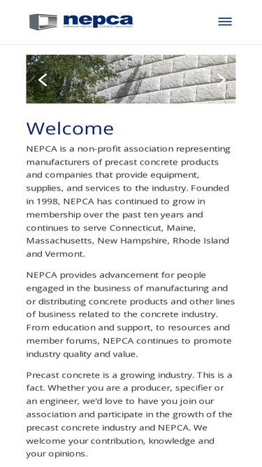 77%NEPCA is a non-profit association representing manufacturers of precast concrete products & companies that provide industry equipment, supplies & services.