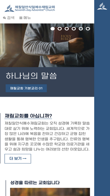 77%제칠일안식일예수재림교회는 오직 성경에 기록된 말씀대로 살기 위해 노력하는 교회입니다. 세계적으로 가장 많은 나라에 복음을 전하고 건강하고 균형 잡힌 생활을 통해 행복한 인생을 추구합니다. 인류의 행복을 위해 지구촌 곳곳에 학교와 의료기관을 세우고 쉼과 희망을 나누고 있습니다.