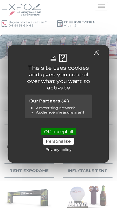 83%gamme de produits adaptés à l'événementiel et la communication visuelle pour un rapport qualité prix conforme à vos attentes : tentes pliantes, drapeaux, stands, roll up, gonflables, banderoles... nos tentes pliantes sont faciles et rapides à monter : des produits d'exception pour vos opérations de communication, vos manifestations sportives et vos événements festifs. découvrez nos tentes montage en 60 secondes.