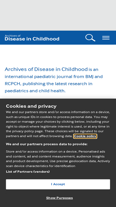 98%Archives of Disease in Childhood is an international paediatric journal from BMJ and RCPCH, publishing the latest research in paediatrics and child health.