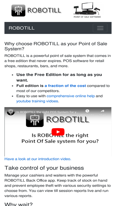 79%robotill is a powerful point of sale system that comes in a free edition that never expires. pos software for retail shops, restaurants, bars and more.