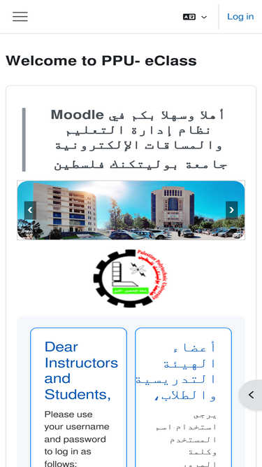 89%ppu- eclass dear instructors and students,use your username and password to login as the following:for student:username: student no. without( / or -) example: 145269password: registration code.for instructor:use your username (without @ppu.edu) and password to login.we are ready to answer any questions related to moodle.