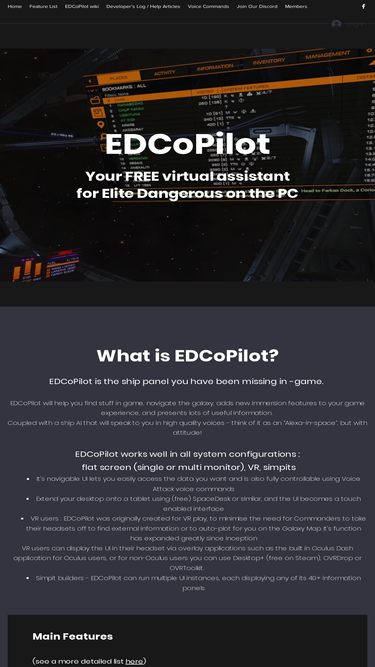 74%EDCoPilot is a virtual assistant software application for use with Elite Dangerous on the PC. Give voice commands or access features via the UI. Vastly reduce the need to remove the headset when playing in VR.