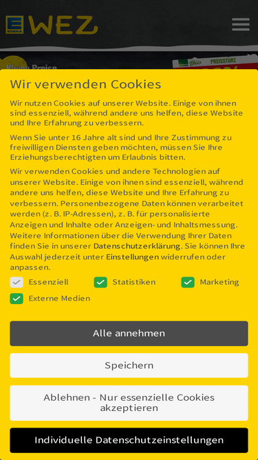 88%Entdecken Sie Informationen rund um Ihren WEZ Markt, wie beispielsweise den wechselnden Mittagstisch, den Marktservices oder Öffnungszeiten der in-Store-Shops.
