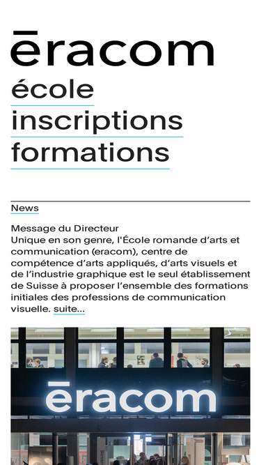 100%Bienvenue à l’ēracom ! L’ēracom est une école professionnelle romande, dont la mission est de former les jeunes et de leur donner des clés et des outils pour entrer dans ... Lire la suite