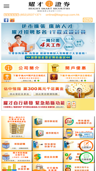 100%耀才證券,香港上市大行 (上市編號1428),分行遍佈全港,開戶即送 20股盈富+ 10股滙豐,孖展高達 9成半 利息低至 1.5%; 提供由金管局認可的 ˹24小時edda直接付款服務˼,只需登記一次,便可 24小時隨時入錢買賣!